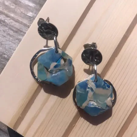 Add a touch of elegance to your outfit with our Sea Glass Effect Earrings. With a sturdy stainless steel stud, these earrings are crafted with polymer clay and painted with acrylic for a beautiful sea glass effect. Perfect for any occasion, they are sure to catch everyone's eye.